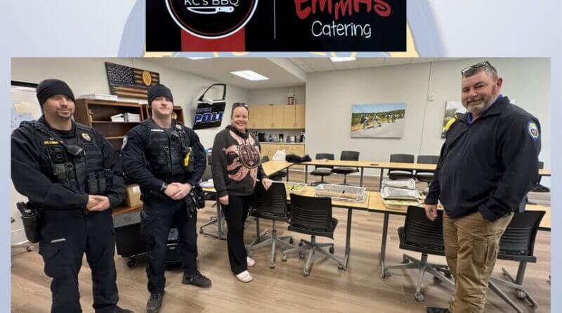 Emma’s Catering and KC’s BBQ delivered meals to the police department today, providing food for officers and staff members.