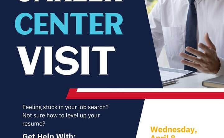 Christy Wright, assistant director of Career Center Employer Services, will be on campus to provide support. She will be at Room 252 from 9 a.m. to 11:30 a.m. and in the front lobby from 2:30 p.m. to 4 p.m.