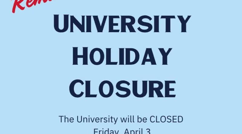 The university will be closed this Friday, April 3, in observance of Good Friday, according to university officials.